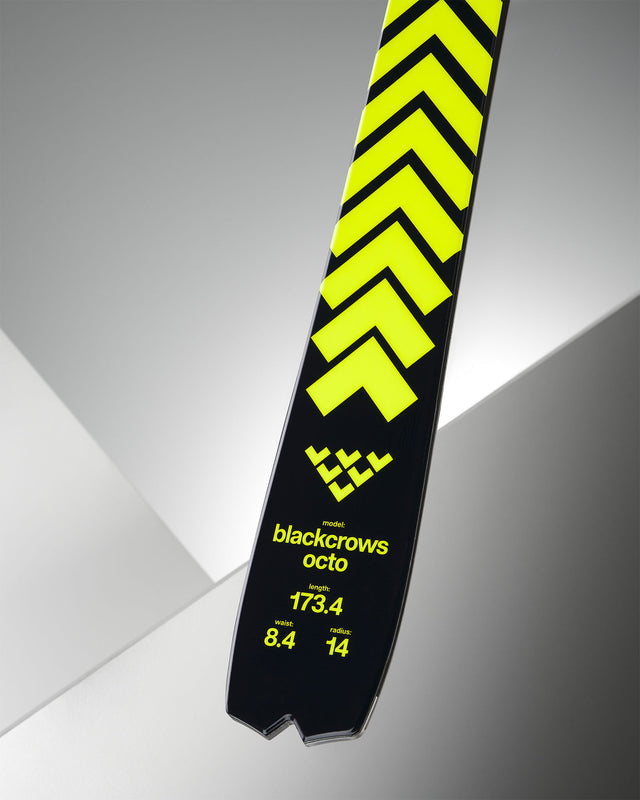 Sharp and wild yet light and comfortable, the new Octo is designed to satisfy alpine skiing aesthetes. Carving purists will find an engaging and high-performing corduroy eater. While its short radius and sporty flex may evoke a slalom ski, the light oversteer provided by the combination of tapered tips and rocker allows you to change the rhythm and shape of your turns on demand, smoothly transitioning from short to medium-range turns—or even skids if that's your preference. The construction, which combines poplar wood and fiberglass, gives the Octo a solid and confidence-inspiring feel while remaining light and agile underfoot. This sensation is further enhanced by its 84mm width, facilitating swift edge-to-edge transitions.