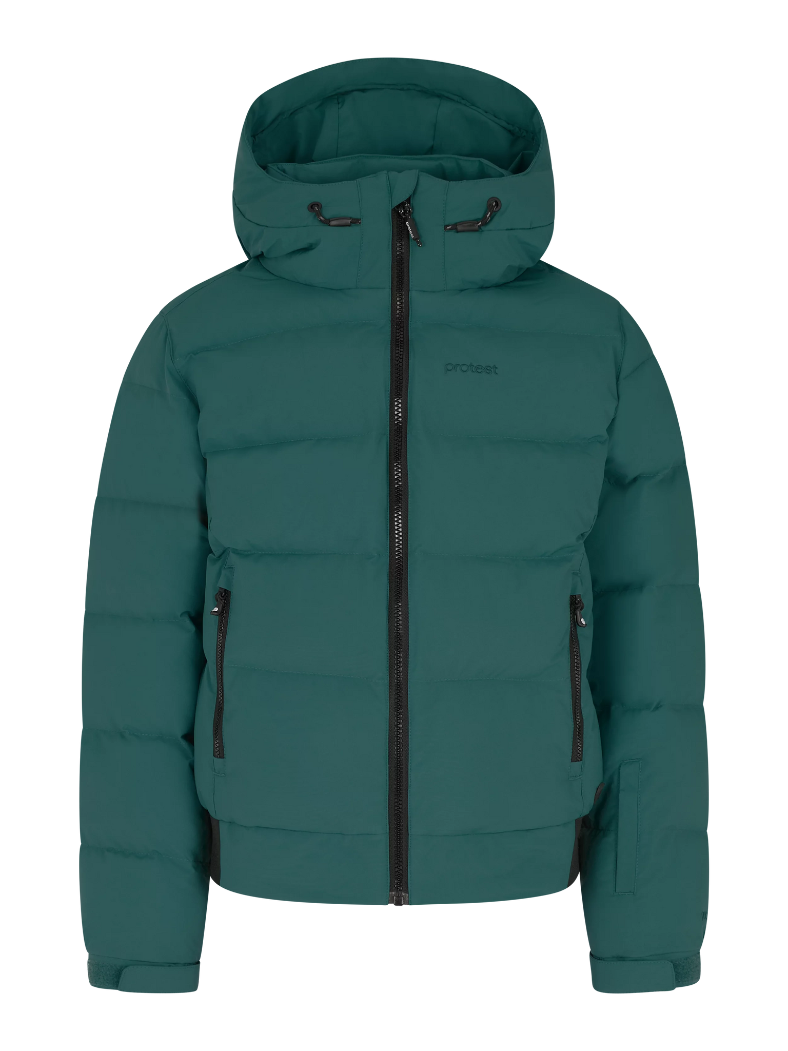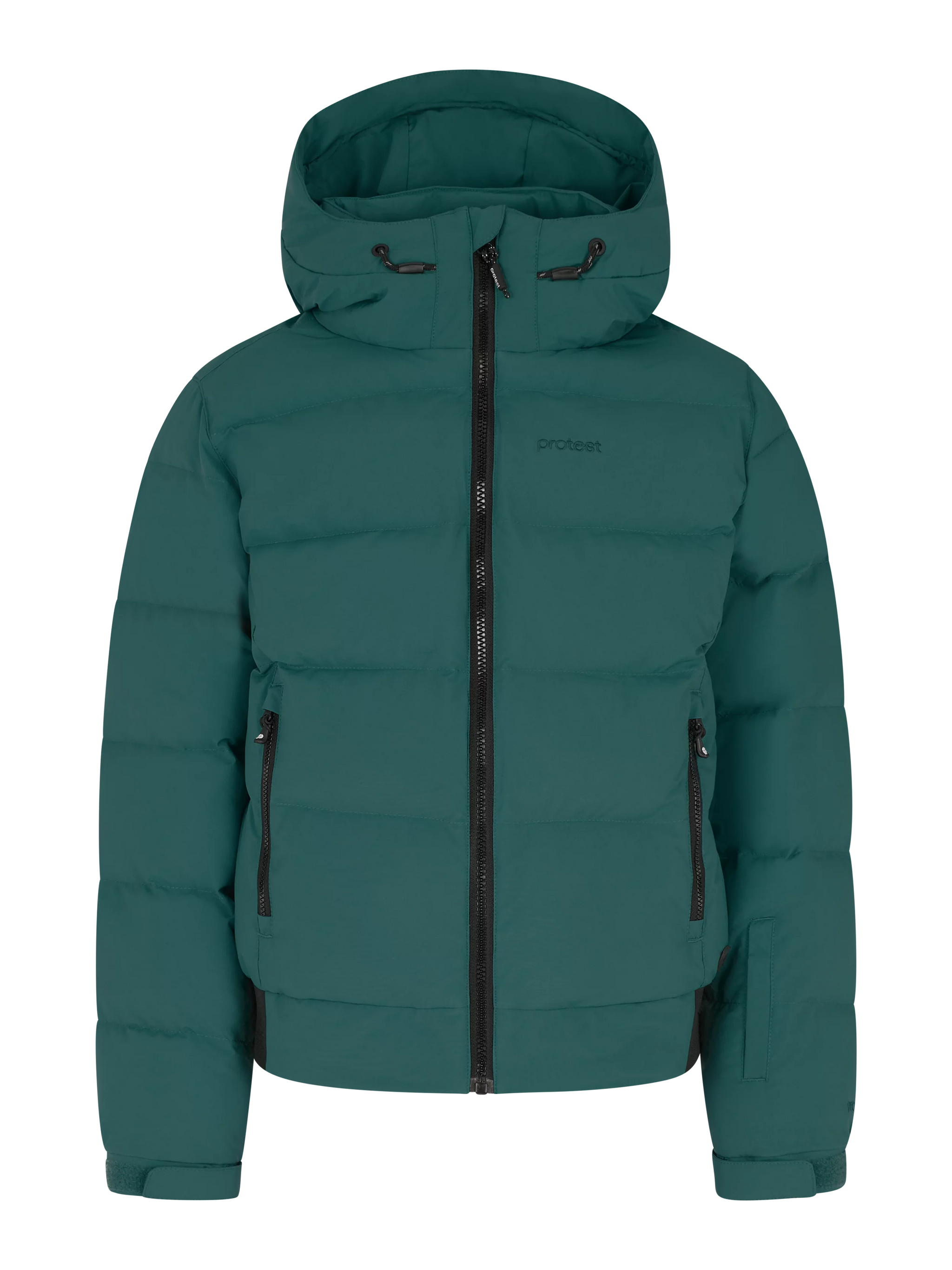 The Protest Eliny Jacket combines eco-conscious design with performance, featuring a PFC-free, 10k water-repellent finish paired with 10k breathable fabric that keeps moisture out allowing perspiration to escape. Thoughtful details like the waist gaiter, snug inner cuffs with thumb hole, protective inside placket, and multiple zippered pockets—including a dedicated lift pass pocket—make this jacket both practical and protective for mountain days.