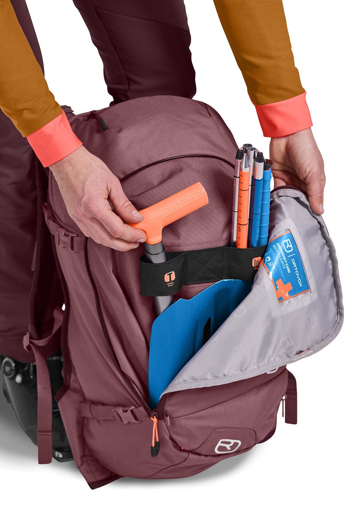 Our TOUR RIDER 28S will equip you for long day tours in any terrain. Clever details make this ski touring backpack a practical, versatile companion in the mountains. Your shovel and probe can be comfortably stowed in a separate, emergency equipment compartment where they’ll still be easily accessible. The spacious main compartment is accessible from the top and back, which means all backpack contents will be easily accessible, not least thanks to the bright interior colors.